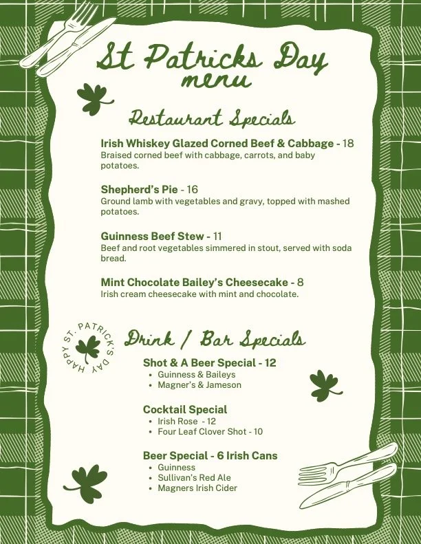 Back to All Events St. Patrick’s Day at The Silver Spoon Saloon Tuesday, March 17, 2026 4:00 PM 9:00 PM Tryon International 25 International Boulevard Mill Spring, NC, 28782 United States (map) Google Calendar ICS Celebrate St. Patrick’s Day the right way at Silver Spoon Saloon! Join us for a festive day filled with great food, cold drinks, and a special St. Patrick’s Day menu crafted just for the occasion.