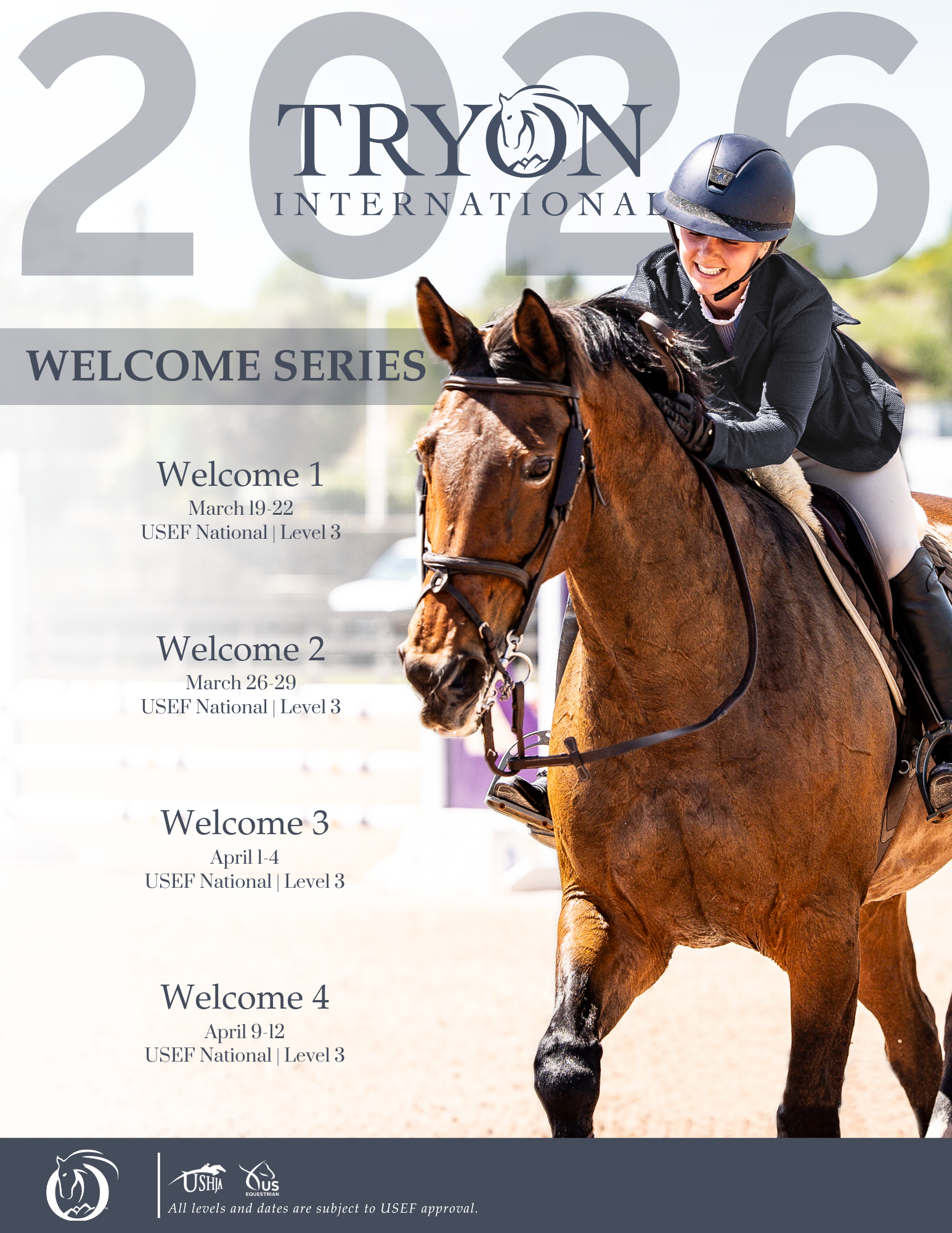 The Tryon Welcome Series will be hosted from March 19-April 12, 2026 and will offer four weeks of National/Level 3 competition. Tryon Welcome 4 runs April 9-12!