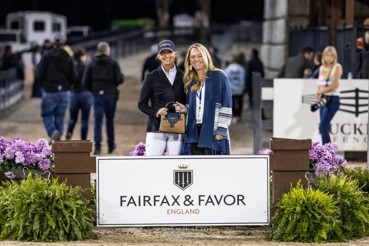 As the highest placing female rider in the $120,000 Skyla Credit Union Grand Prix CSI 3*, Kristen VanderVeen received the Leading Lady Award presented by Fairfax & Favor alongside Tryon International’s Director of Equestrian Marketing, Communications & Business Development Jimmie Schramm.