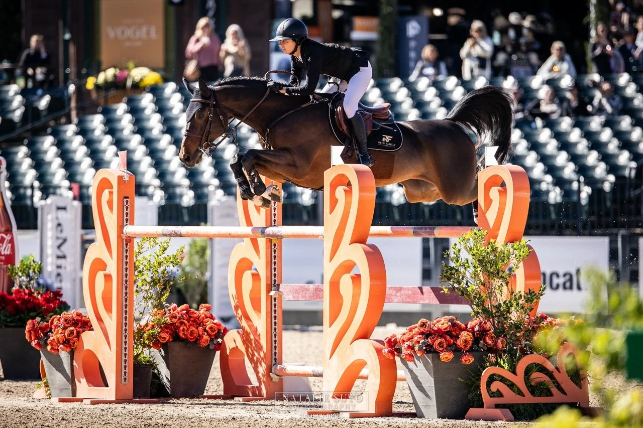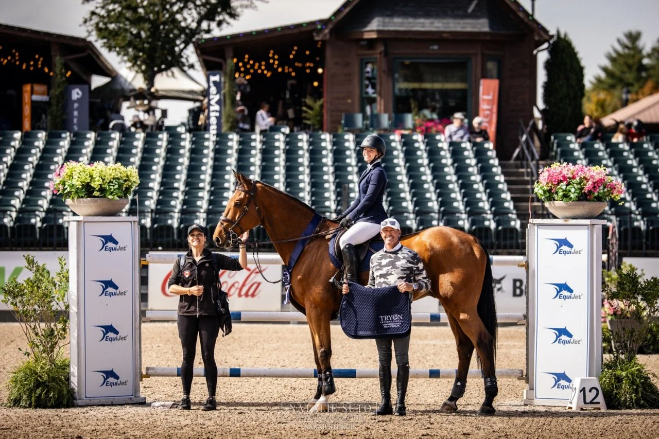 October 24, 2025 - Achieving the fastest, clear round of the $6,000 EquiJet Speed Stake CSI 2* was Corinne Sweeney (USA), who piloted Chaccossini (Chacco-Blue x Cassini II) the Sagamore Farms II, LLC's 2012 Hanoverian gelding to the winning time of 69.49 seconds. Thursday’s Welcome Stake champion, Jessica Springsteen (USA) and Stone Hill Farm's 2017 Belgian Warmblood gelding Rockstar Van Stal Petit Breck (Cornet Obolensky x Action-Breaker) achieved second place on their time of 71.74. Taking the yellow ribbon with a 74.61 second ride was the 2012 Dutch Warmblood mare Glenlin Farm entry, Hinosa C (Vigo D'Arsouilles STX x Vink Guidam), and Madison Paparillo (USA) at the reins.