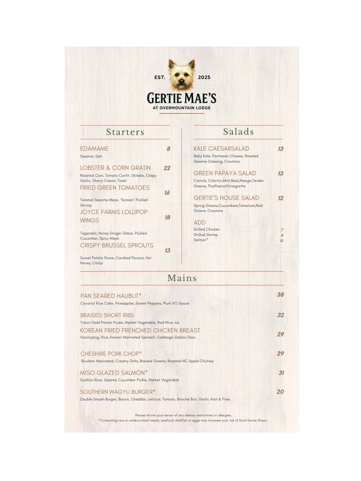 Gertie Mae’s is nestled within Overmountain Lodge, offering a more relaxed and intimate dining experience just steps from your stay. Whether you're starting your day or winding down in the evening, it’s a natural extension of the lodge experience.