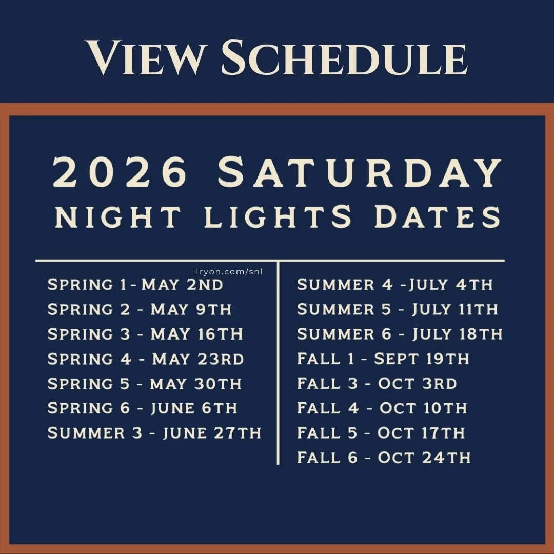 Admission is free, with General Admission giving you access to Saturday Night Lights, including the competition and many of our family-friendly activities across the grounds. Parking is available on-site for a fee. Food, drinks, and dining experiences are offered throughout the venue, so you can customize your night however you’d like.